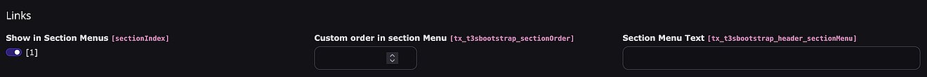 Wenn die Option “Custom section order” in der “Extension Configuration” aktiviert wurde, kann die Reihenfolge der Menu-Items bei Bedarf individuell angepasst werden: