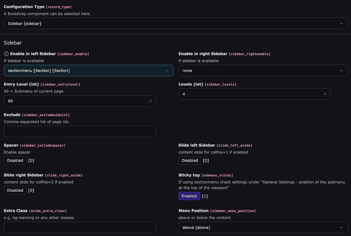 Im BE Modul "T3SB Config" kann unter "Sidebar" das gewünschte Menü (Submenu oder Sectionmenu) ausgewählt werde.