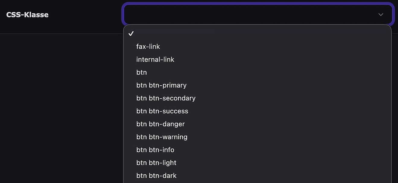 Beim erstellen eines Links kann im “Link Browser” eine Button-Class mit kontextbezogenen Farbklassen auswählt werden.