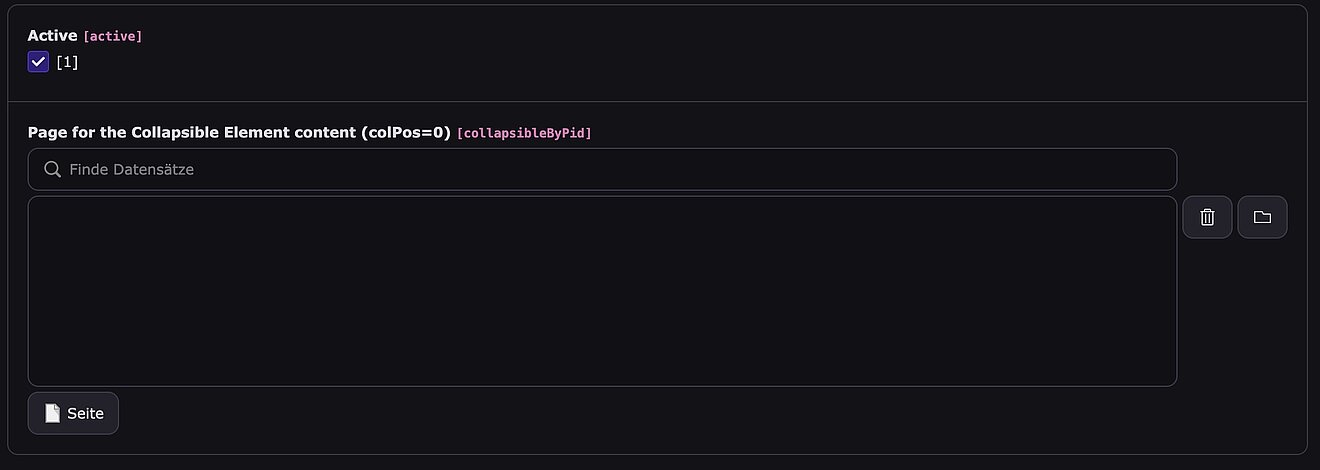 Zuerst muss ein “Collapsible Container” im Backend erstellt werden.