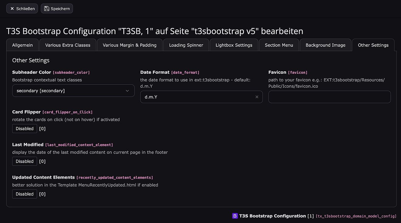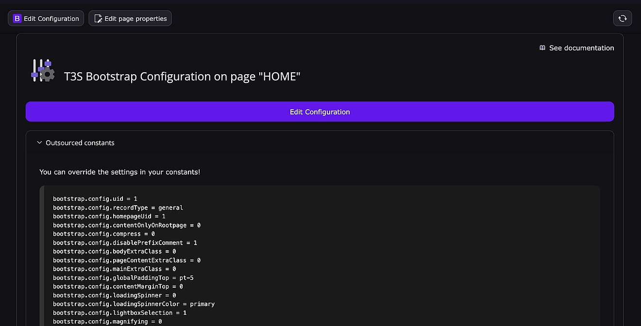 Die Konstanten (Konfiguration) aus der “Root-Page” können wie gewohnt für Unterseiten überschrieben werden - z.B.: