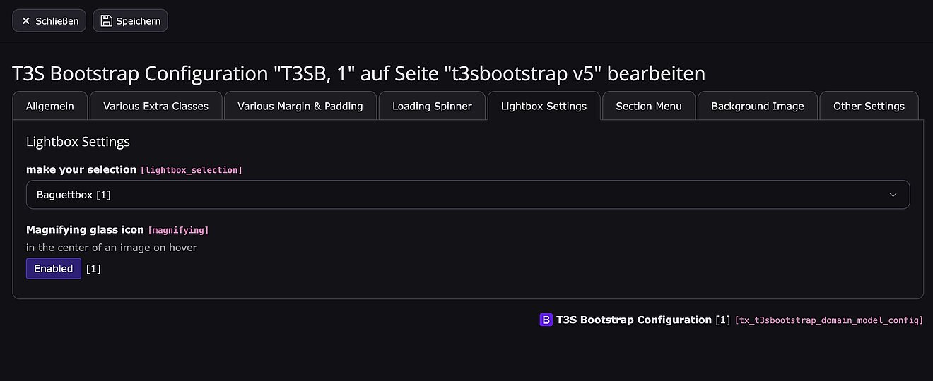 Nach dem Speichern der Konfiguration in die Datenbank, werden die Dateien t3sbconstants.typoscript und t3sbsetup.typoscript mit der gespeicherten Konfiguration in der EXT:t3sb_package erstellt bzw. aktualisiert.