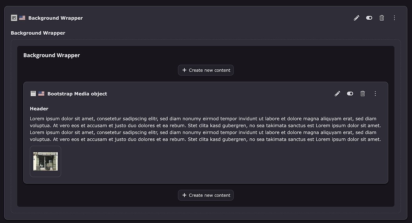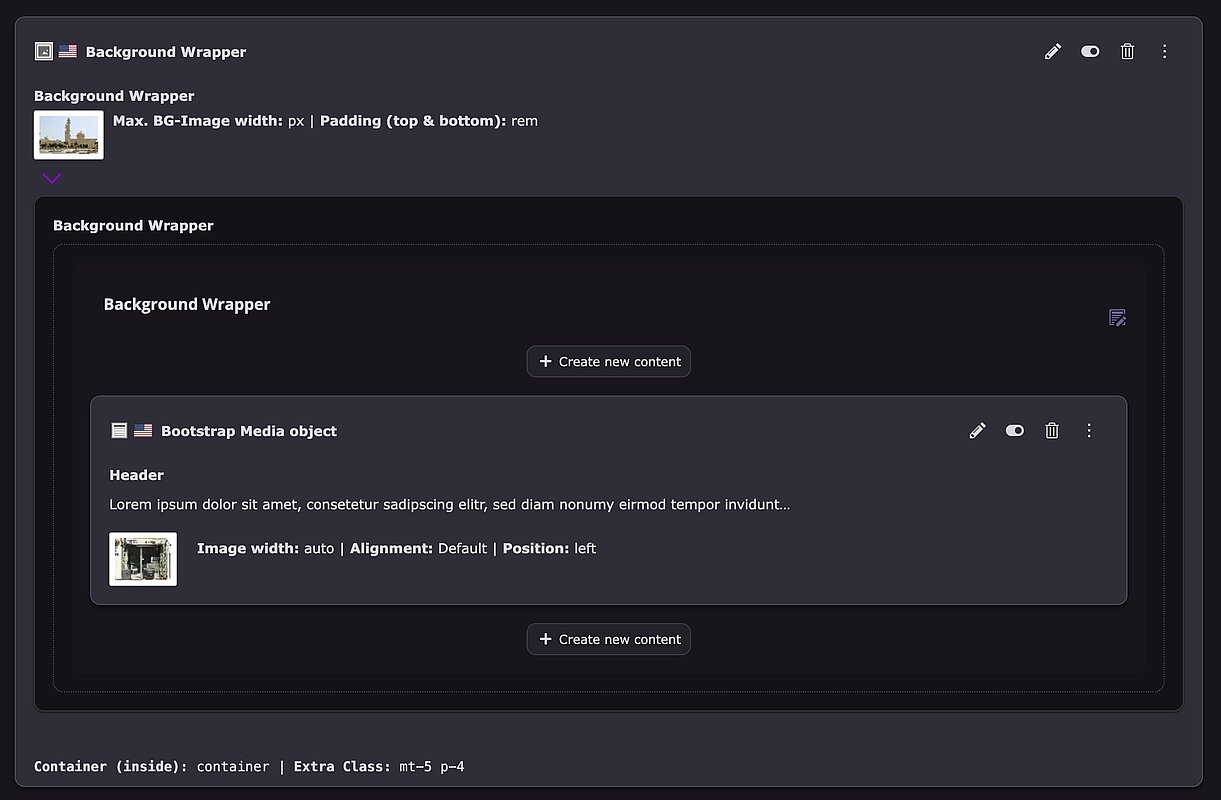 Zeigt die Palette „Bootstrap-Farbe” in fast jedem Inhaltselement an, wenn diese Option aktiviert ist. Sie können diese Klassen auch im Eingabefeld „Extra Class“ festlegen.