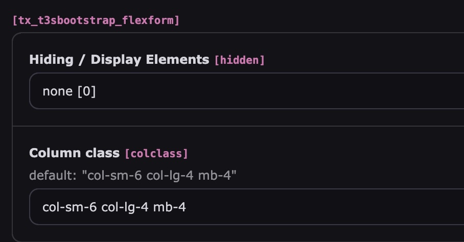 Anpassungen können im Imput-Feld "Column class" durchgeführt werden!