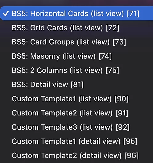 Danach stehen weitere "Template Layouts" (s. Screenshot) zur Verfügung.