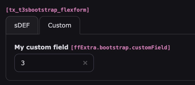 - So kann auf diesen Wert im Template zugegriffen werden (s. Screenshot): {ffExtra.bootstrap.customField}